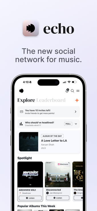 음악 순위 매기기 외에도 에코는 사용자 간의 사회적 연결을 촉진하는 기능을 제공합니다. 사용자는 다양한 음악 장르를 탐색하고, 토론에 참여하며, 참여를 통해 성과를 잠금 해제할 수 있습니다. 음악 발견과 소셜 네트워킹의 이 조합은 에코를 음악과의 관계를 심화하고 같은 생각을 가진 사람들과 연결하고자 하는 모든 사람에게 독특한 플랫폼으로 만듭니다.